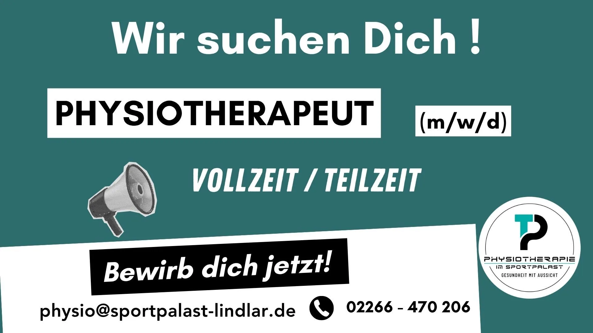 Stellenangebot: Physiotherapeut:in (m/w/d) Die Physiotherapie Praxis im Sportpalast Lindlar sucht ab sofort eine:n engagierte:n Physiotherapeut:in (m/w/d) in Voll- oder Teilzeit.…