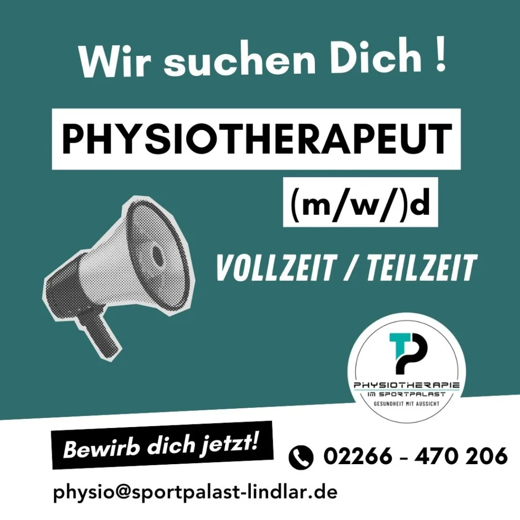 Die Physiotherapie Praxis im Sportpalast Lindlar sucht ab sofort eine:n engagierte:n Physiotherapeut:in (m/w/d) in Voll- oder Teilzeit.